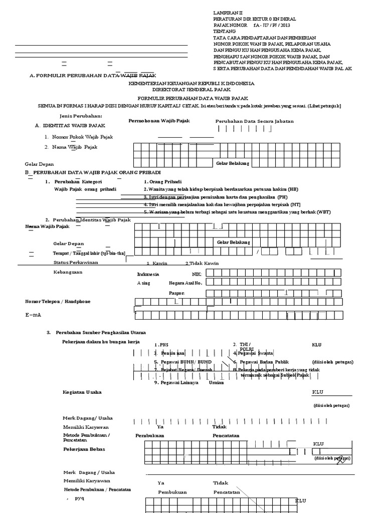 Npwp Nppkp Formulir Perubahan Data Wp Per 20 2013