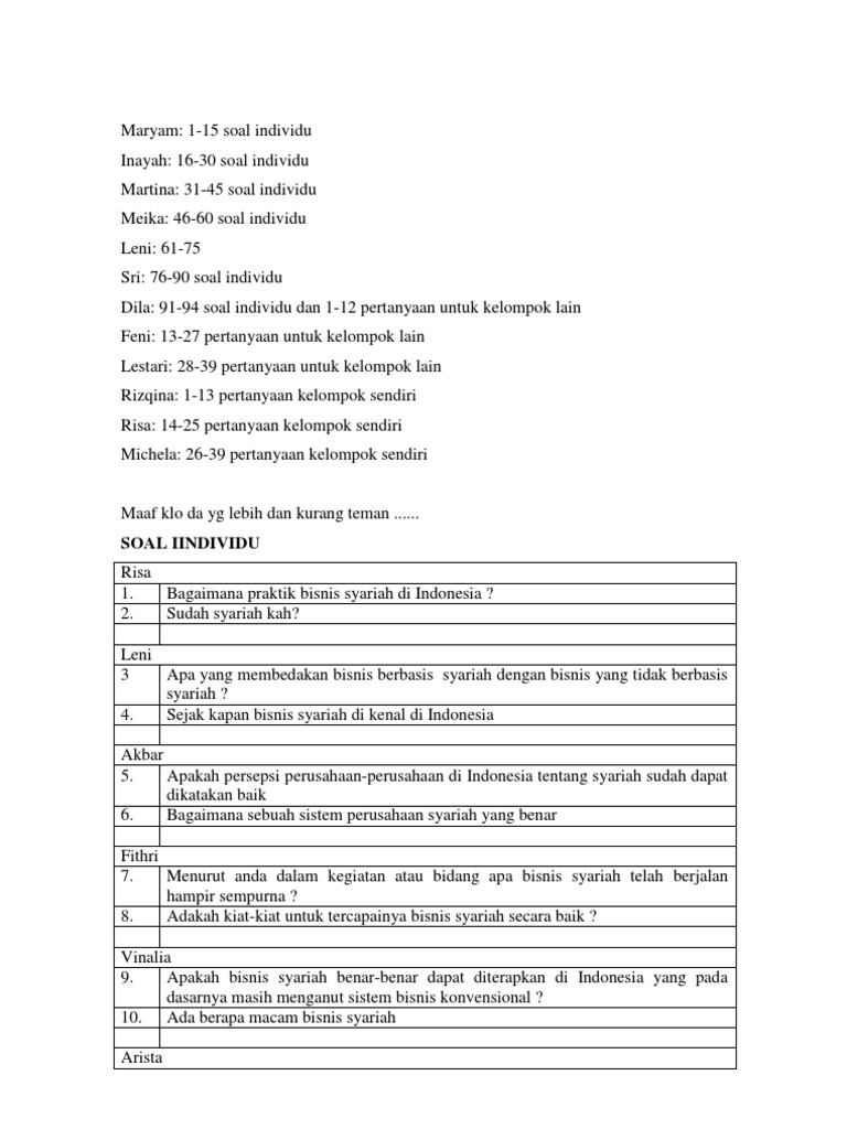 Doc Pertanyaan Alk Anisa Yusuf Academia Edu