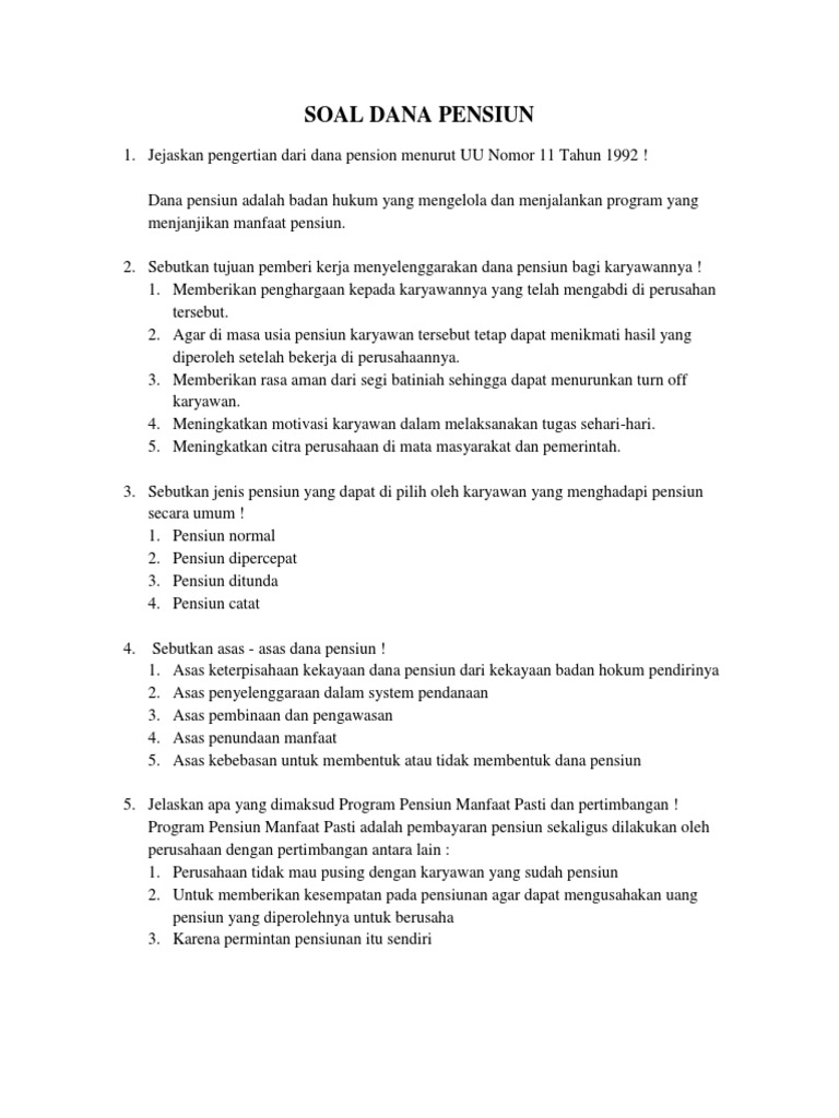 Contoh Soal Dana Pensiun Beserta Jawabannya Literatur