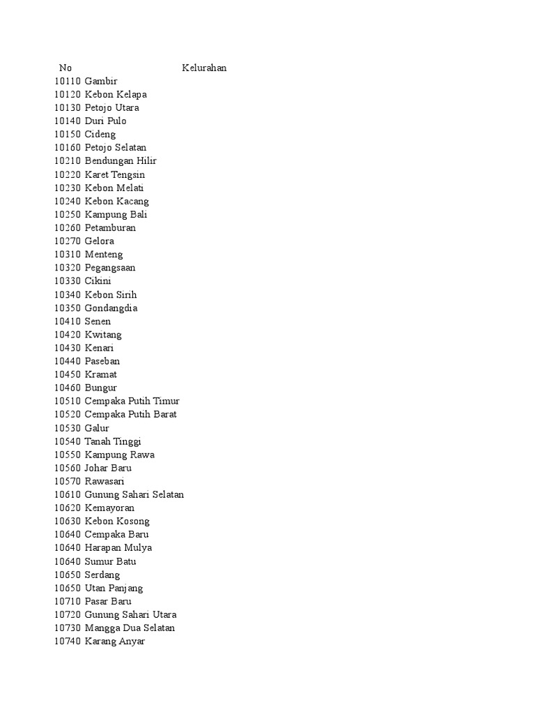Daftar Nama Kecamatan Di Indonesia Kodepos