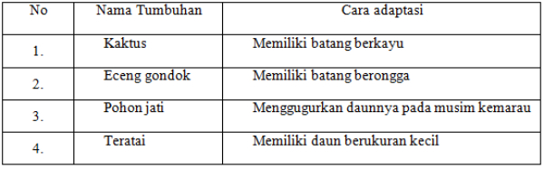 Perhatikan Tabel Berikut Pasangan Nama Tumbuhan Dan Cara Adaptasi Yang Tepat Berikut Ini Adalah A 1 2 Dan 4 B 1 3