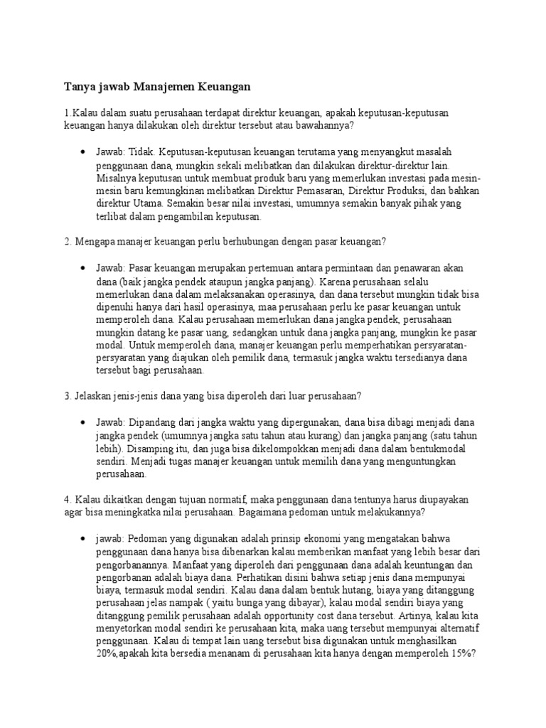 Tanya Jawab Manajemen Keuangan Pdf