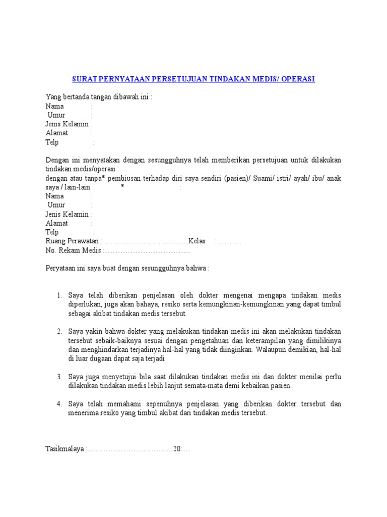 Surat Pernyataan Persetujuan Tindakan Medis