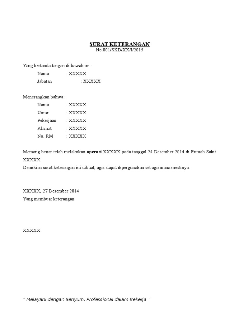 Surat keterangan operasi dari dokter. Nah pada saat itulah anda bisa meminta surat keterangan. 15 contoh surat keterangan sakit yang benar dan paling lengkap dalam berbagai kesempatan tentu surat keterangan sakit sangat diperlukan. SURAT KETERANGAN DOKTER UNTUK OPERASI AORTA HARUS DIISI DENGAN LENGKAP OLEH DOKTER YANG MENGOBATI MERAWAT SI SAKIT Mohon dapat diberikan secara rinci hal-hal mengenai pasien.