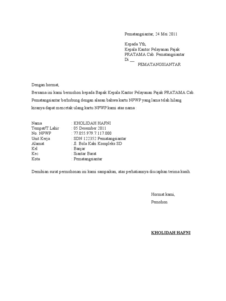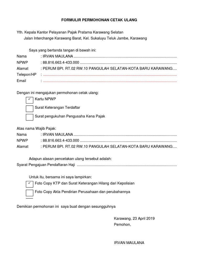 Formulir Permohonan Cetak Ulang Npwp Word Bagikan Contoh