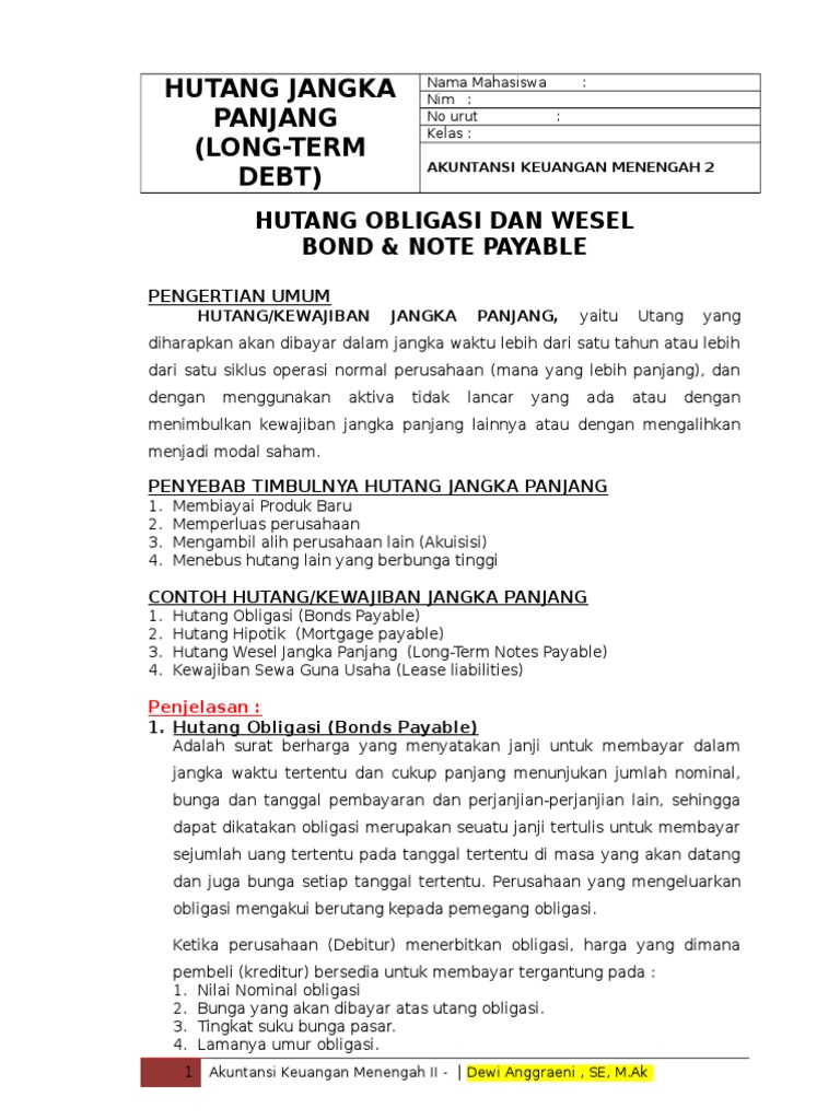 Soal Akuntansi Hutang Jangka Panjang. Utang Wesel Jangka Panjang Akuntansi Keuangan Menengah 2 Wesel bayar jangka panjang dimana. Utang hipotik yaitu suatu jenis pinjaman utang jangka panjang dengan jaminan benda benda tidak bergerak.