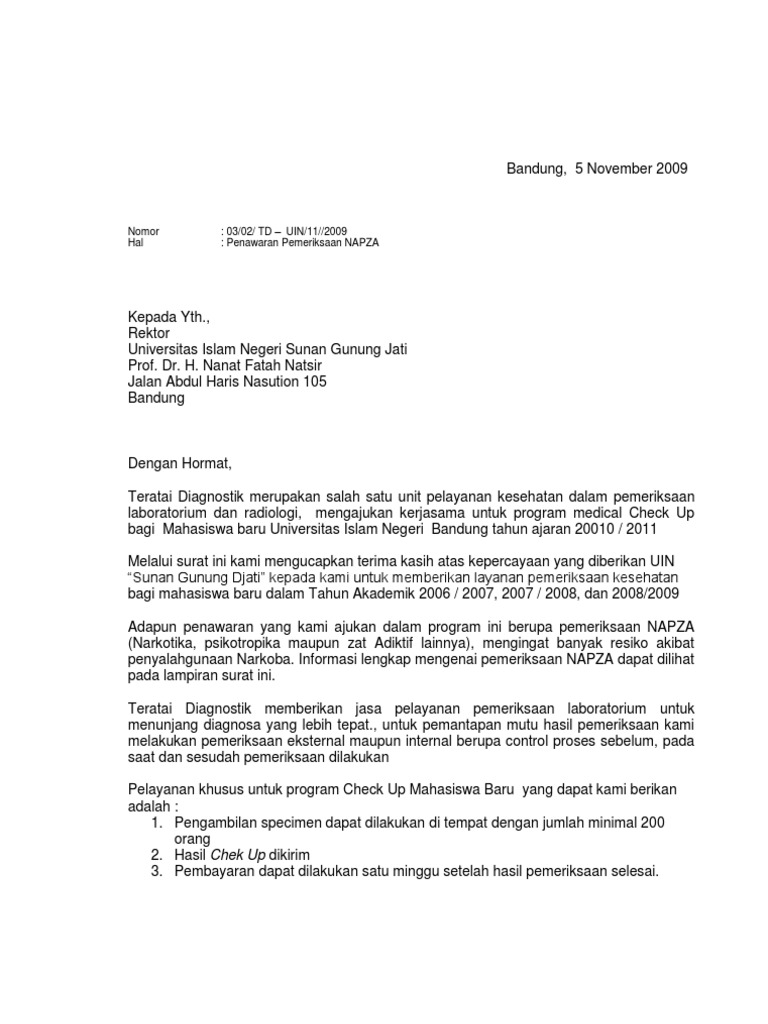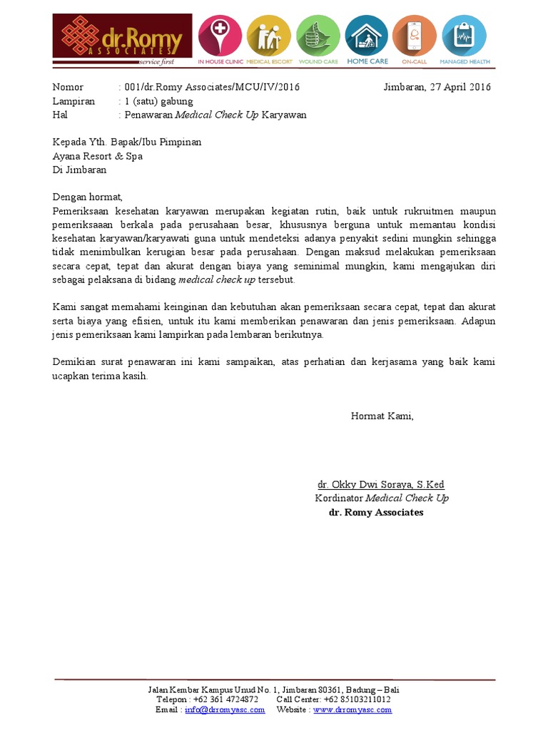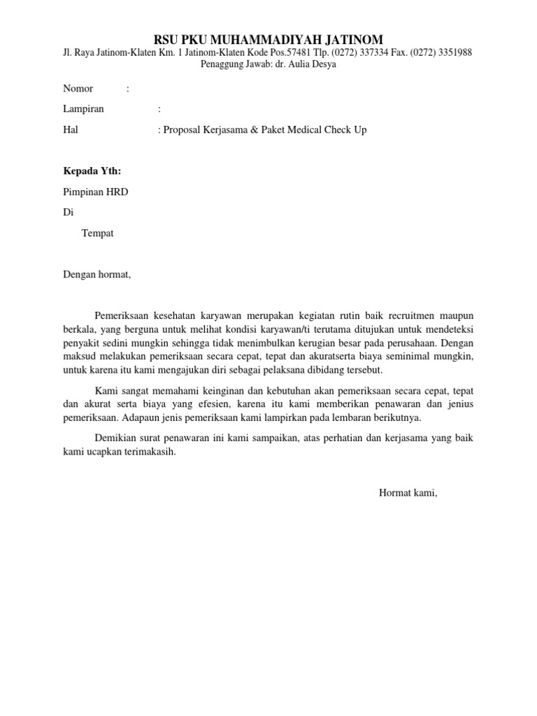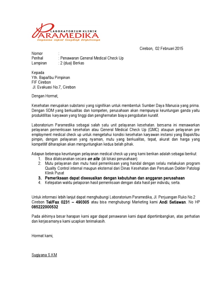 Contoh Surat Penawaran Medical Check Up Berbagi Contoh Surat