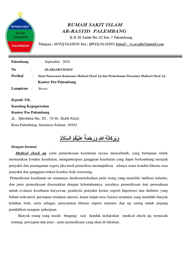Pengajuan Kerjasama Medical Check Up Kantorpos Palembang Pdf