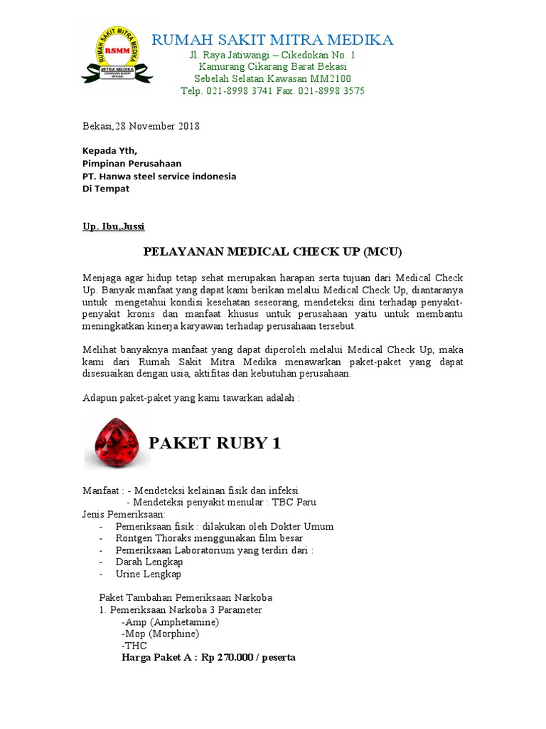 Doc Surat Penawaran Mcu Pt Salamah Rizani Rumah Sakit Academia Edu