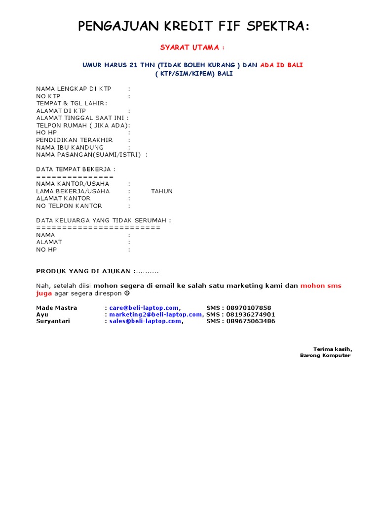 Doc Formulir Permohonan Kredit Zima Aries Academia Edu
