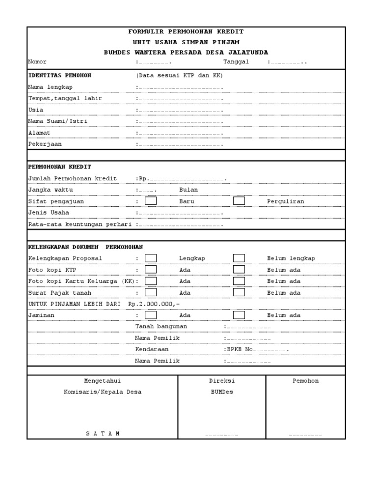 Contoh formulir aplikasi kredit. Provisi dan biaya administrasi. JotForm menyederhanakan formulir aplikasi online baik jika Anda. Panduan Simpan Pinjam Koperasi.