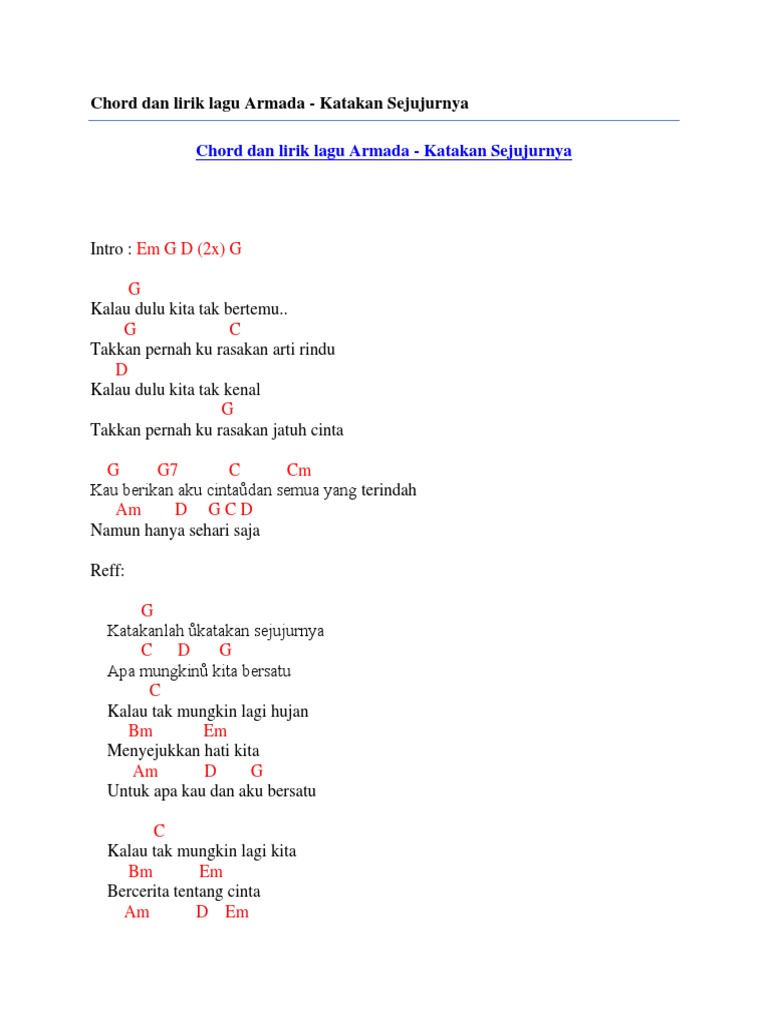 Chord Dan Lirik Lagu Armada Katakan Sejujurnya By Chord Zila Issuu